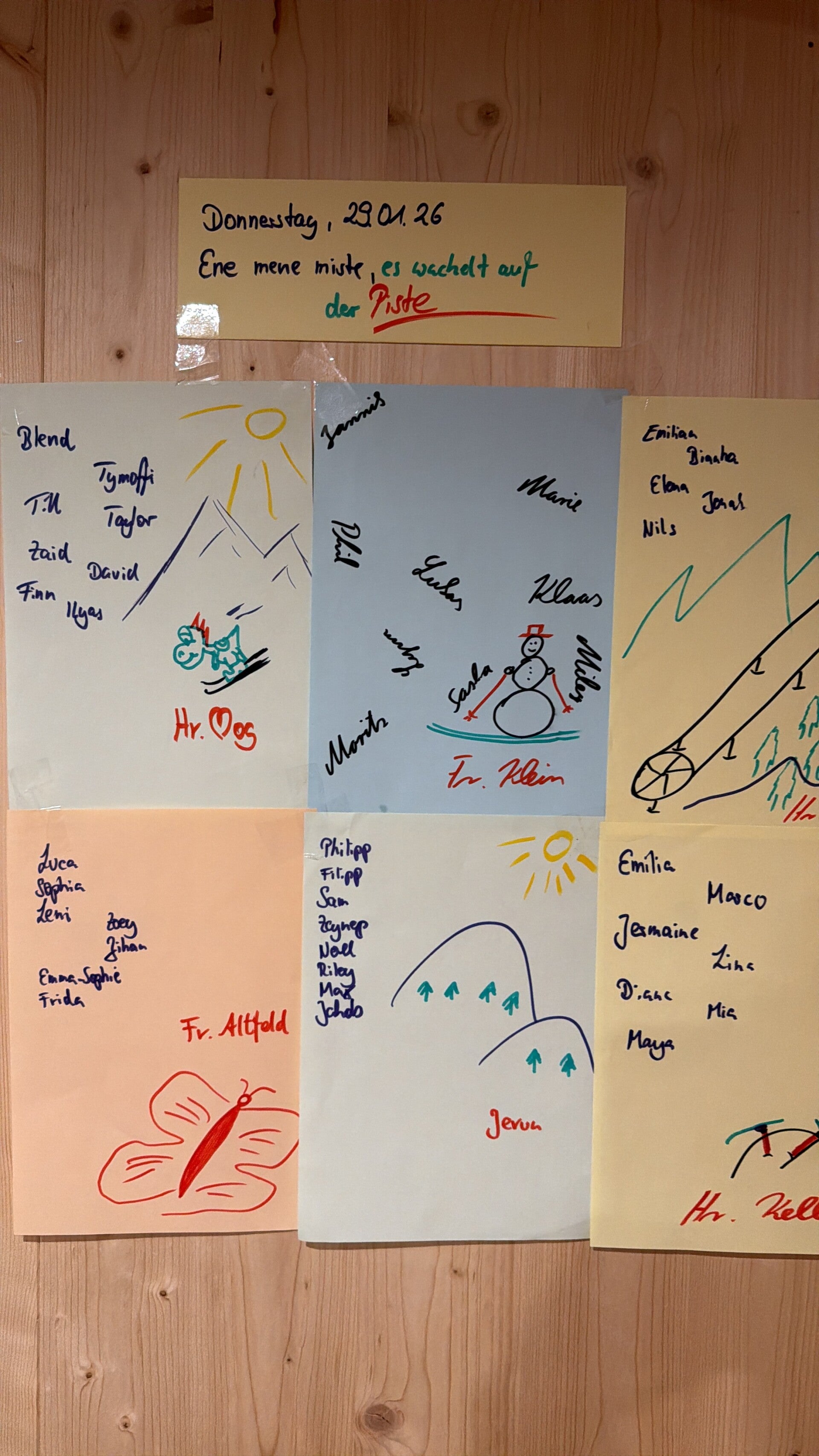 Unsere vier 7. Klassen verbrachten eine unvergessliche Skifreizeit im wunderschönen Allgäu. Vom 18. bis zum 23.01.2026 und vom 25. bis 30.01.2026 waren jeweils zwei 7. Klassen in jeweils zwei verschieden Häusern zusammen unterwegs. Das Ziel war es, Ski zu fahren und eine tolle Zeit in den Bergen zu erleben. Die