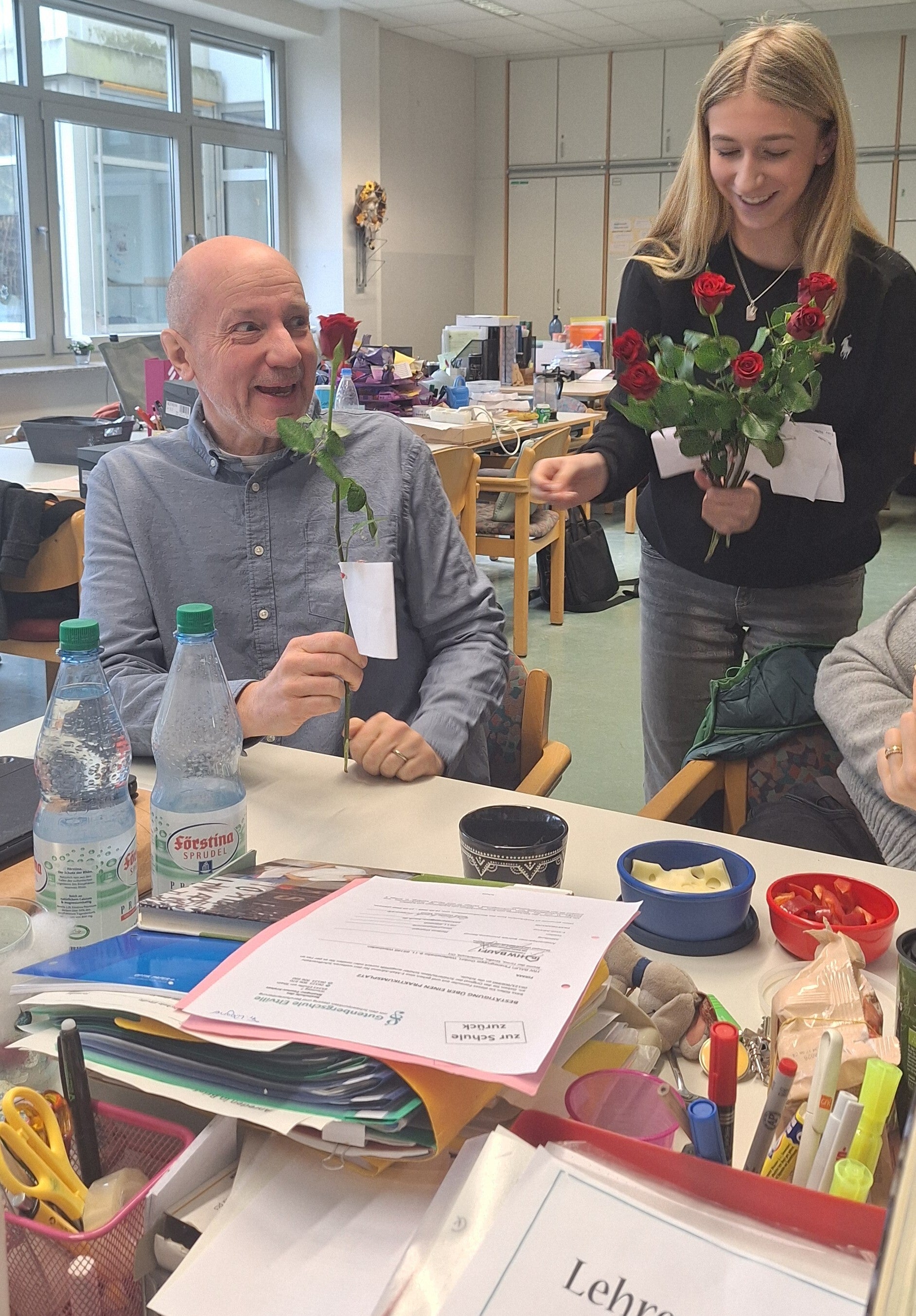 In einer Zeit, in der der Schulalltag oft von Terminen und Leistungsdruck geprägt ist, wollte die Klasse ein Zeichen für die Bedeutung von Freundschaft und Wertschätzung setzen.. Jede einzelne Rose, die an diesem Tag verteilt wurde, war eine Botschaft: "Schön, dass es dich gibt!" oder "Danke für deine Unterstützung!" - eine Botschaft, die auch vor den Lehrkräften nicht Halt machte.
